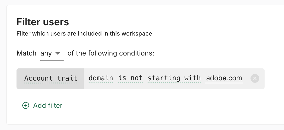 @adobe.com). Go to:Workspace Settings → Engagement Score → Filter Users. - Trait-Based Filtering: Filter users or accounts using traits passed from PostHog (e.g.,